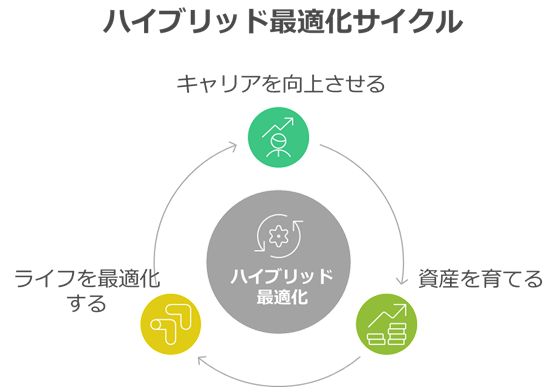 その後の「昇進試験不合格」を機に、私は所属会社だけに依存する危機感を覚え、以下3点の最適化を柱とする新たな転機を迎えました。