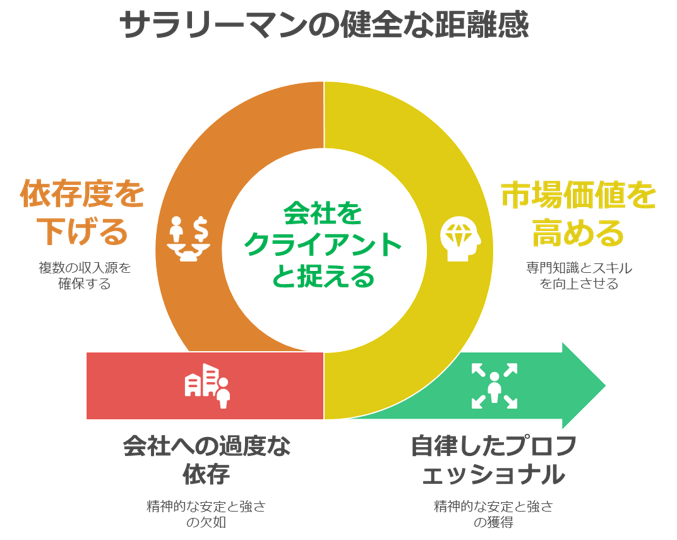 会社への依存を捨てたことで、会社は「ストレスの源」から「私の労働資本を評価し、対価をくれる重要なパートナー」に変わりました。